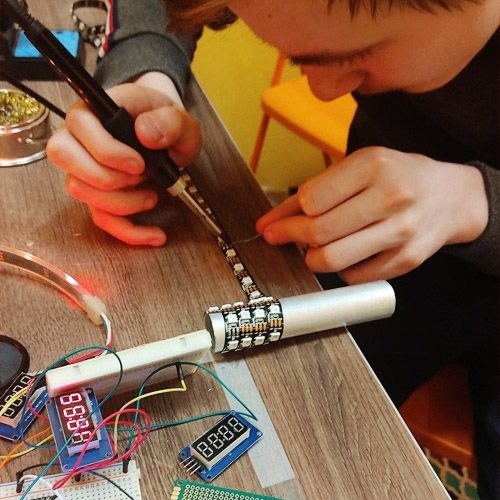 Мастер-классы для 500 детей по практической электронике — сборка и пайка настоящего Светового меча.